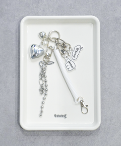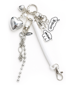 洗練されたシルバーのハートとボールチェーンをベースに、ホワイトのスプリングストラップを組み合わせ、クリーンでトレンド感のあるY2Kスタイルに仕上げました。